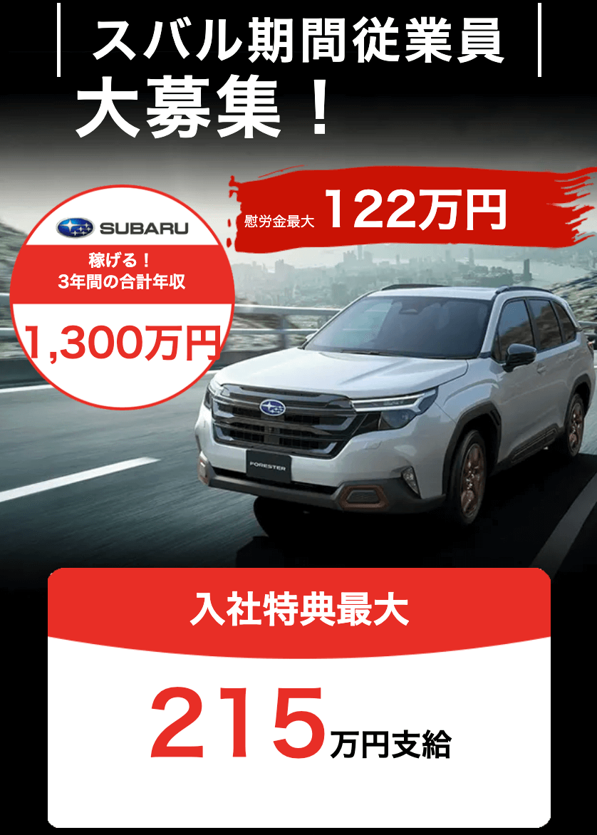 入社祝い金100万・生産協力金70万円/契約更新謝礼金60万円