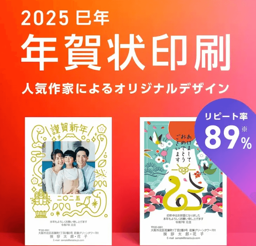 年賀状印刷費用: 2,475円~(30枚)※宛名書き印刷費も含む