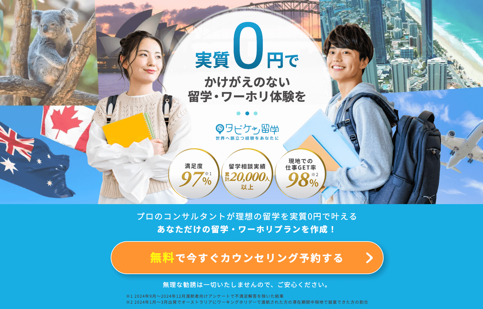 留学エージェント利用者数No.1!他社より最大50%OFFで貯金がなくても留学に行ける