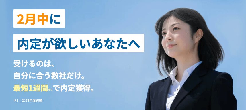 新卒に特化。最短2週間のスピード内定・求人3,000社以上。365日サポート・OB選考対策・通過ES見放題。Google口コミ4.9 |